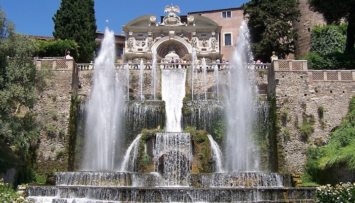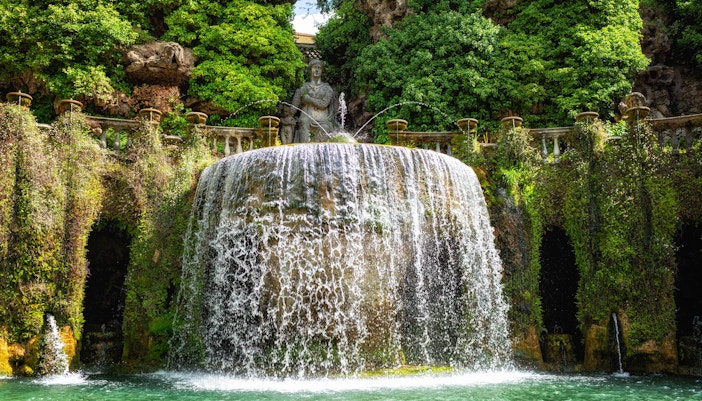 Villa d'Este staat bekend om zijn prachtige tuinen met honderden fonteinen, watervallen en terrassen, maar ook om zijn indrukwekkende Renaissance architectuur. Water speelt een hoofdrol met trapsgewijze fonteinen, grotten en spiegelende poelen die de terrastuinen sieren. Dit innovatieve ontwerp van de waterpartij, in combinatie met de algehele artistieke visie, beïnvloedde tuinen in heel Europa en leverde Villa d'Este zijn plaats op als Unesco-Werelderfgoed.